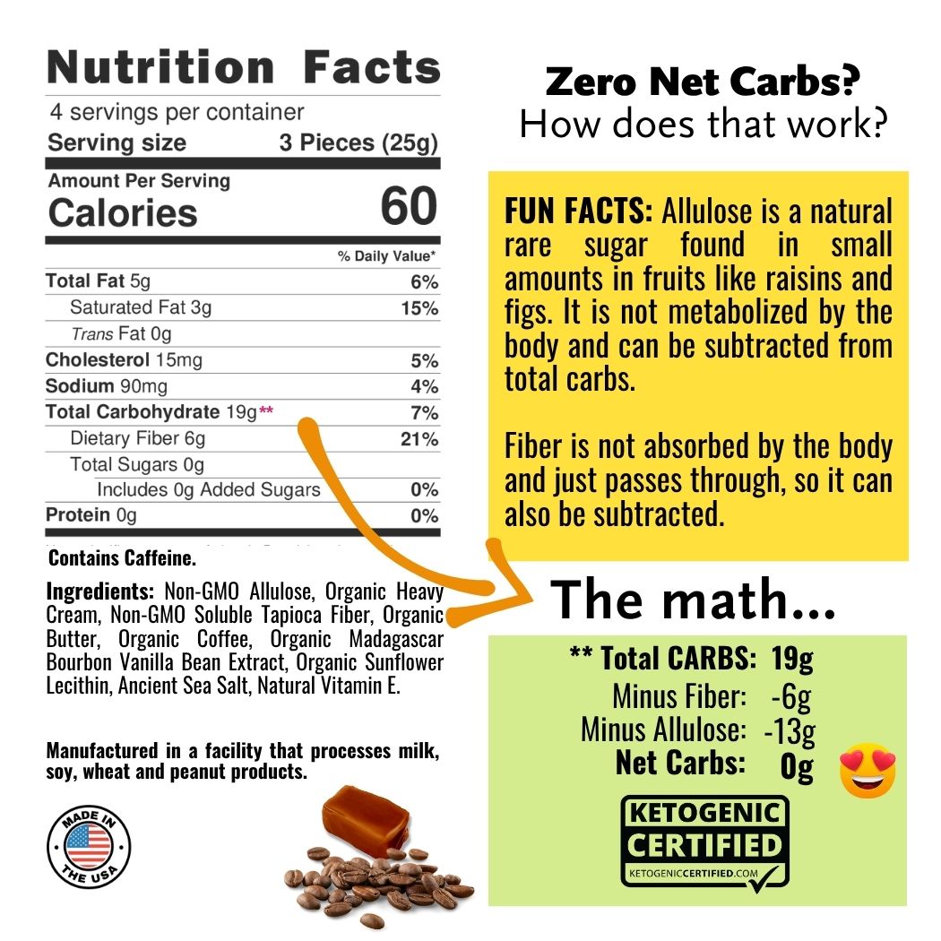 Zero sugar, zero net carbs, and free from sugar alcohols, our caramels are truly zero impact and suitable for all low sugar diets, keto safe, and diabetic friendly.