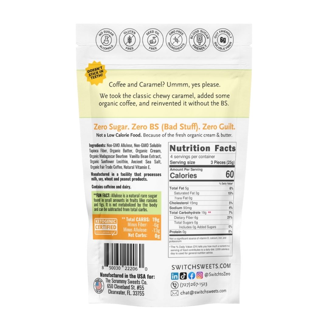 SWITCH™ Coffee Caramels are made using the same recipe and traditional methods as our best selling Classic Caramels, but with added organic fair trade coffee.